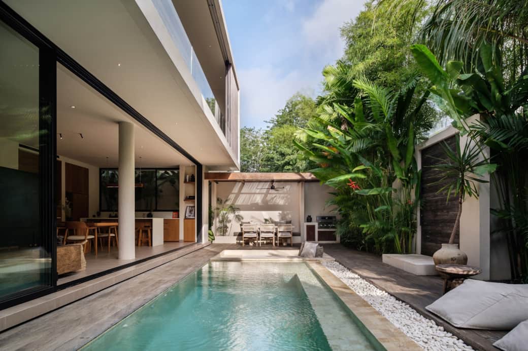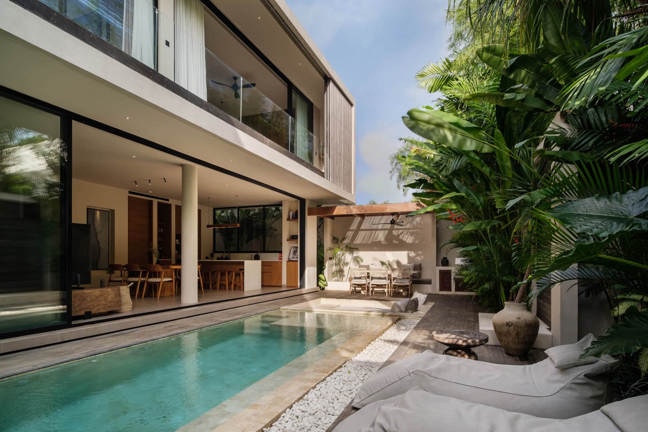 Our home o is a brand new property completed early 2025 and is a favorite amongst interior-lovers. On the ground floor, oversized sliding glass doors blur the line between inside and out. A cool, fully enclosed living area with A/C and fan opens seamlessly onto the private pool deck.